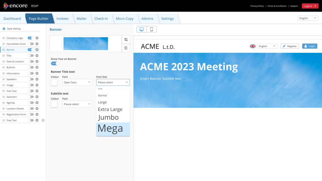 The company wanted to create a new self-serve application, which would provide all the tools necessary in one app to self-manage the event. The application would allow companies to: create and build their event this included