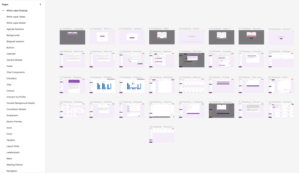 Below is a screenshot taken from the Figma component library showing some component pages and the app desktop pages made entirely using the design library.